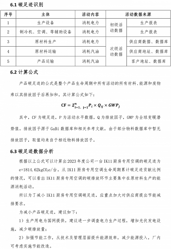 IK11 廚房專用空調碳足跡核算報告